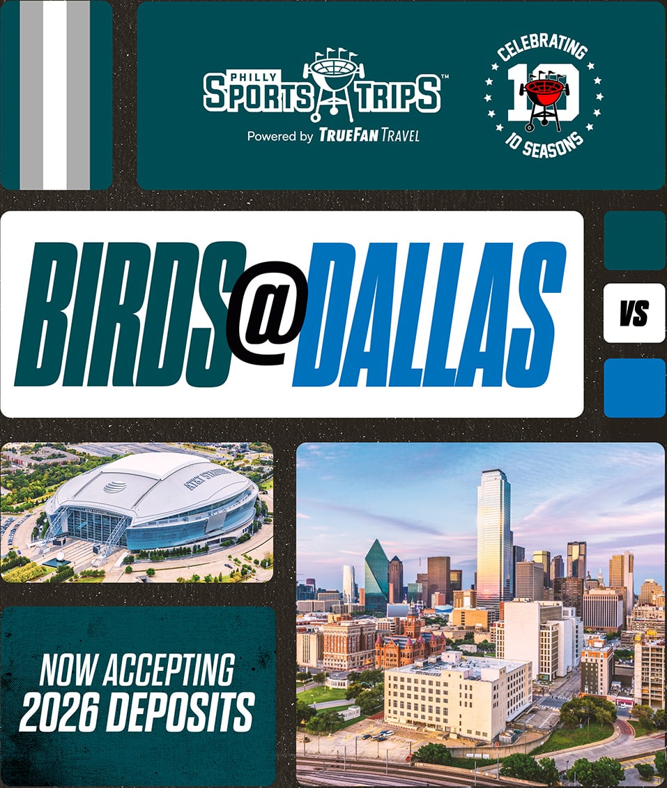 Eagles vs. Dallas isn’t just a game — it’s THE rivalry. There’s nothing sweeter than marching into enemy territory with a sea of passionate Philly fans who can’t stand the Cowboys and aren’t shy about it. Taking over Jerry World is a tradition at this point, and this year we’re gearing up for another legendary weekend — bigger tailgates, louder chants, and another statement win for the Birds.