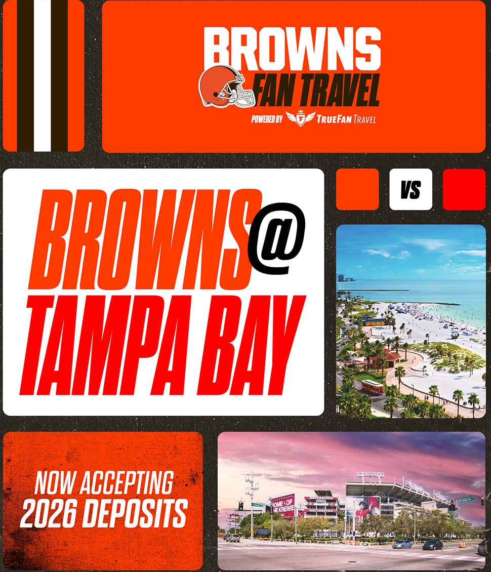 TrueFan Travel has partnered with the Cleveland Browns to take diehard Browns fans on the road this season! We are heading south to prey on Tampa Bay! Let’s take over Raymond James Stadium together! Between the beach vibes, and Browns energy, this is the perfect backdrop for a weekend of sunshine and football.