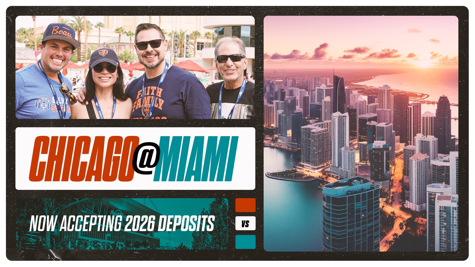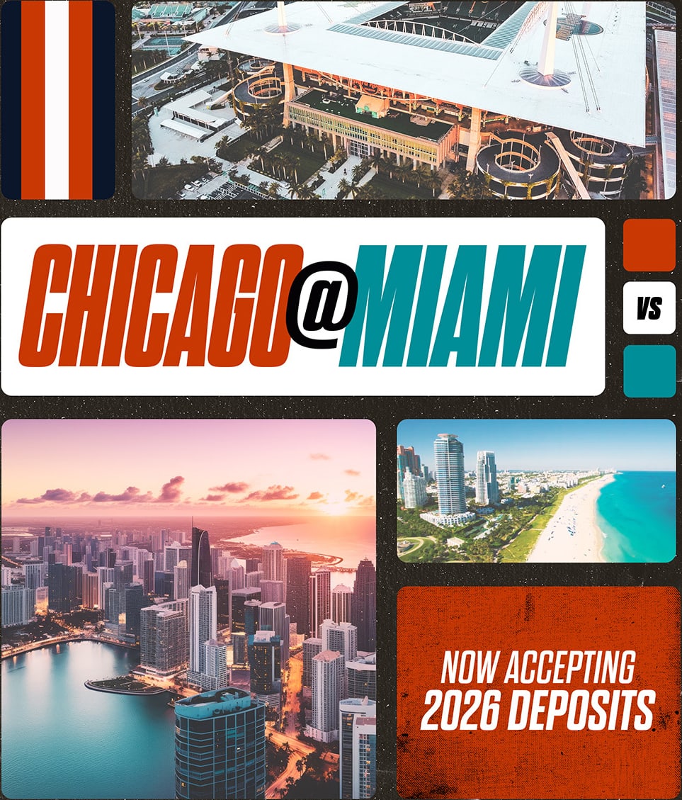 You will be part of a passionate group of Chicago fans; all headed to Miami together to secure a win on the Dolphins home turf. With every detail of the trip handled by the TrueFan team—from top-notch accommodations to curated experiences—you can focus on repping Chicago and having the time of your life. Don’t miss out on this incredible opportunity to combine your love for football with an unforgettable travel experience.