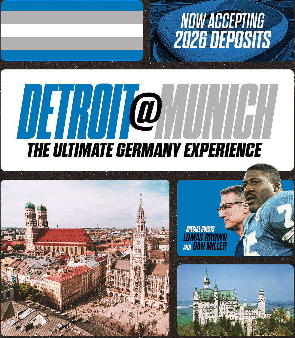 This game will mark the Lions’ return to international play in more than a decade. Join Detroit fans in Germany for a 5-night unforgettable fan experience. After many incredible trips abroad, we’re thrilled to head to Germany — this time alongside the passionate Lions fanbase.