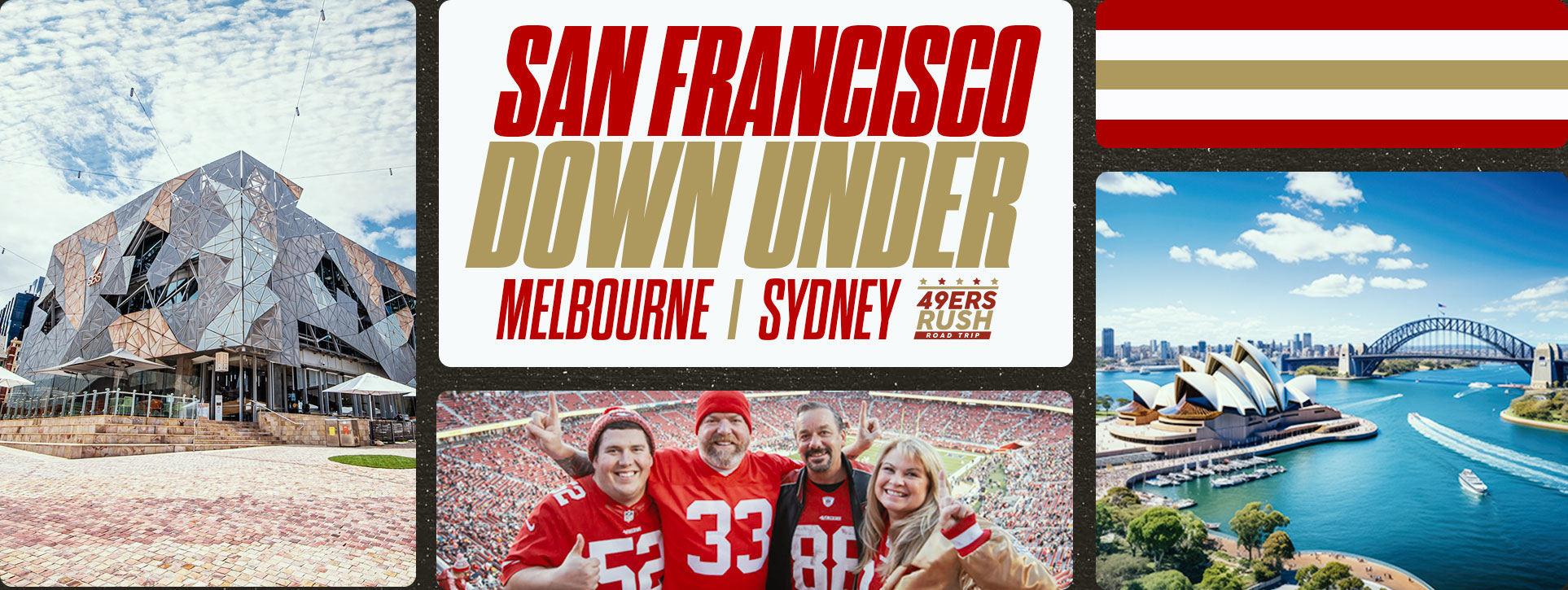 You’ll explore two of the world’s most exciting cities, tailgate with 49ers alumni and have tickets to the inaugural NFL game in Australia. This is more than a trip—it’s a dream vacation.